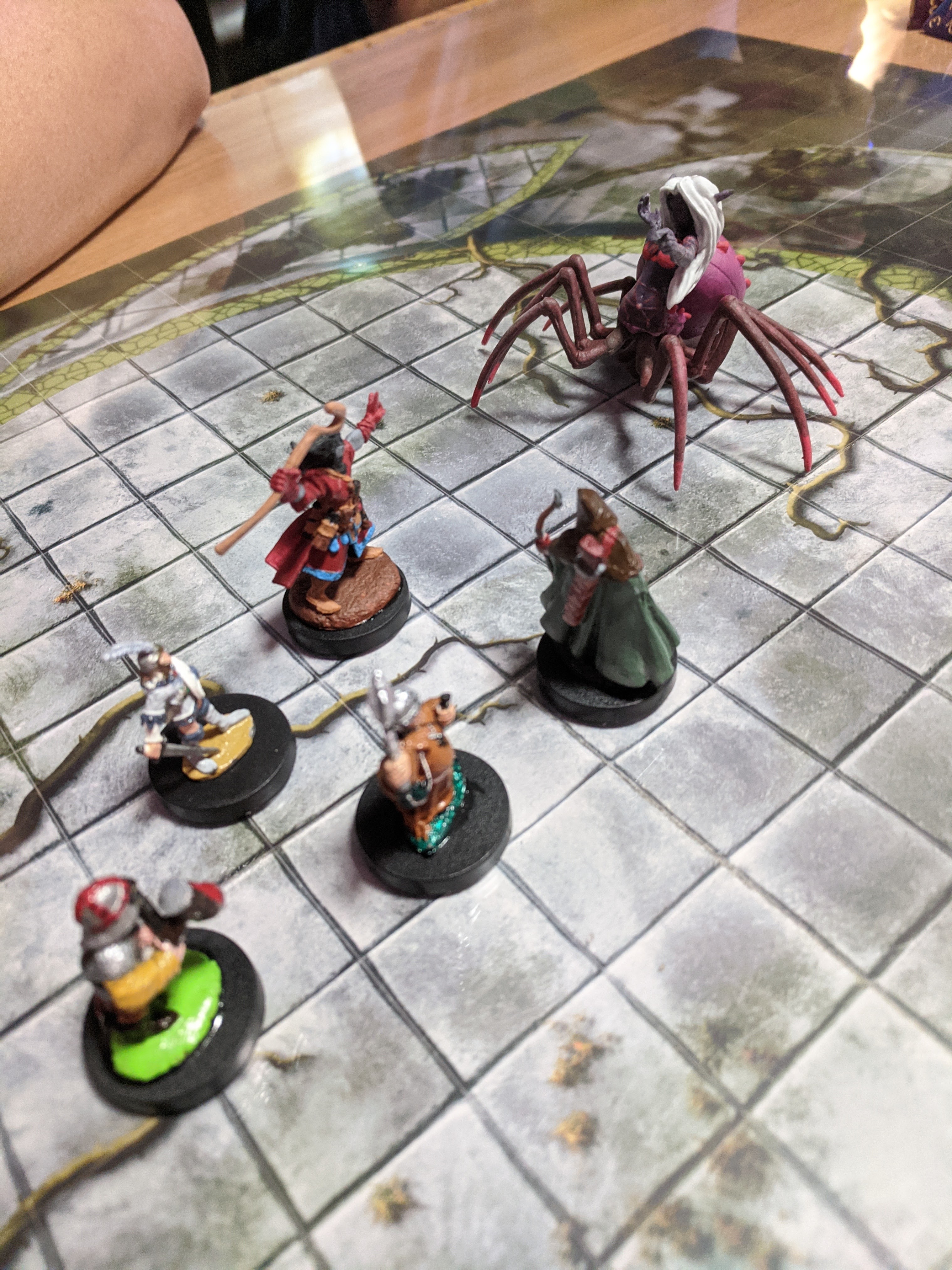 You quietly enter the Drider's lair, scanning the room for the abomination. It's webs hang thick from every corner hindering your movement. Your goal is in sight, the fist sized magical ruby that the Mage hired you to steal, is set atop an arcane pedestal bathed in a purple light across the room. Suddenly, the Drider glides down a web strand to the floor, between you and a life of riches. What do you do?