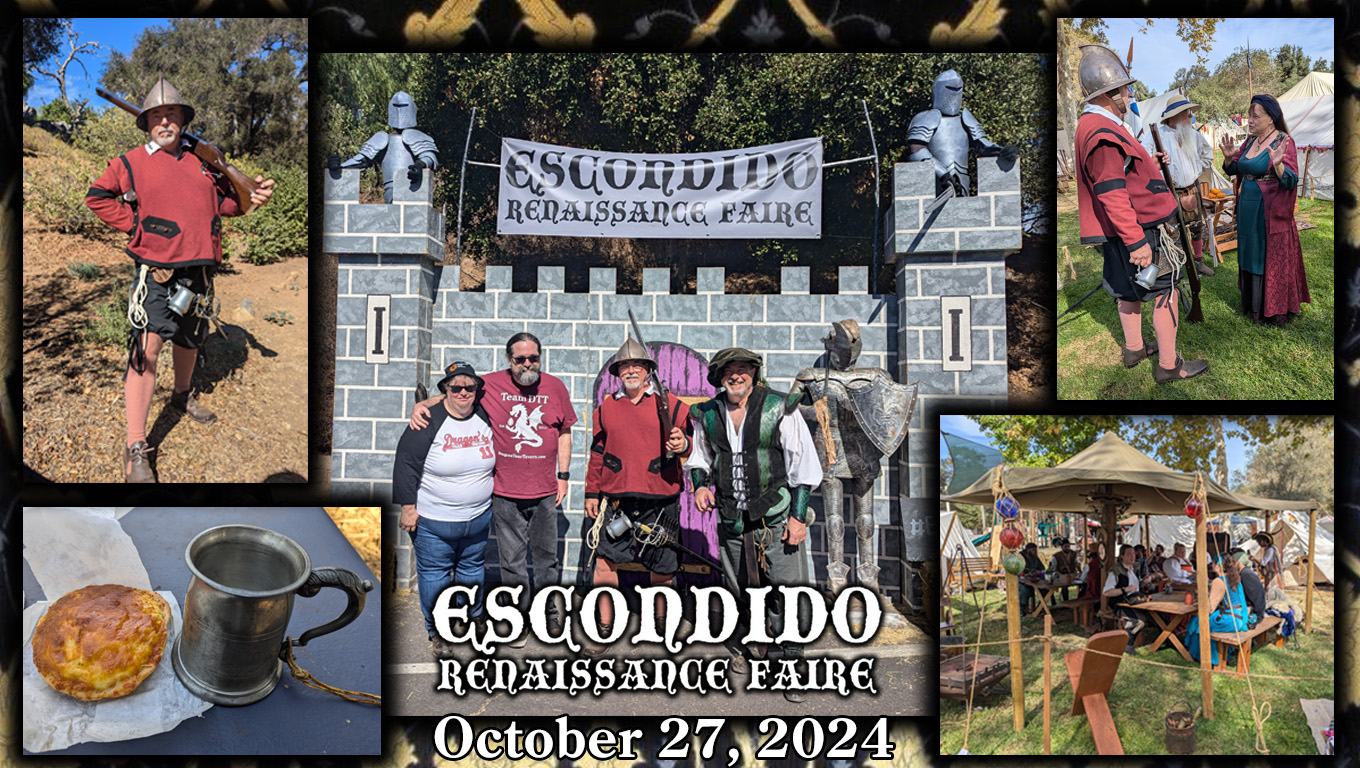 Thank you again adventurers for joining us at the Escondido Renaissance Faire (southern California) for a fun time in October, 2024! We had our period authentic rifleman this time to help keep us safe. Looking forward to seeing more of you at the next faire!